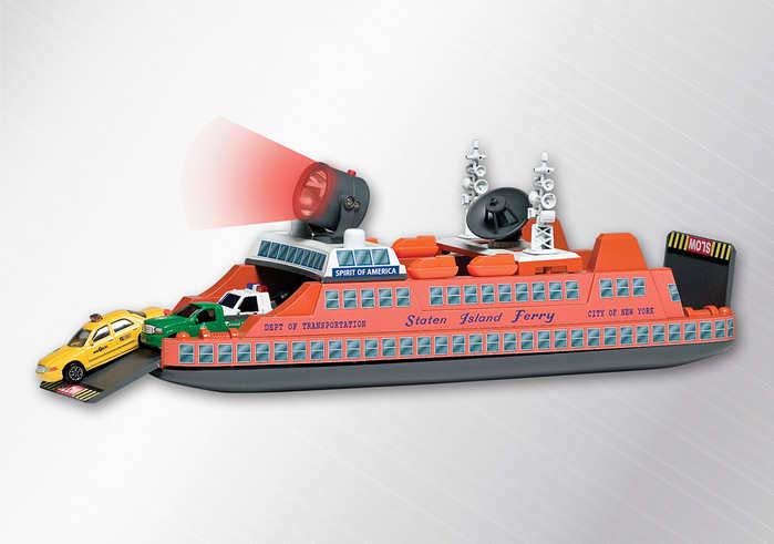 This Staten Island ferry set contains an officially licensed die cast ferry with three vehicles.