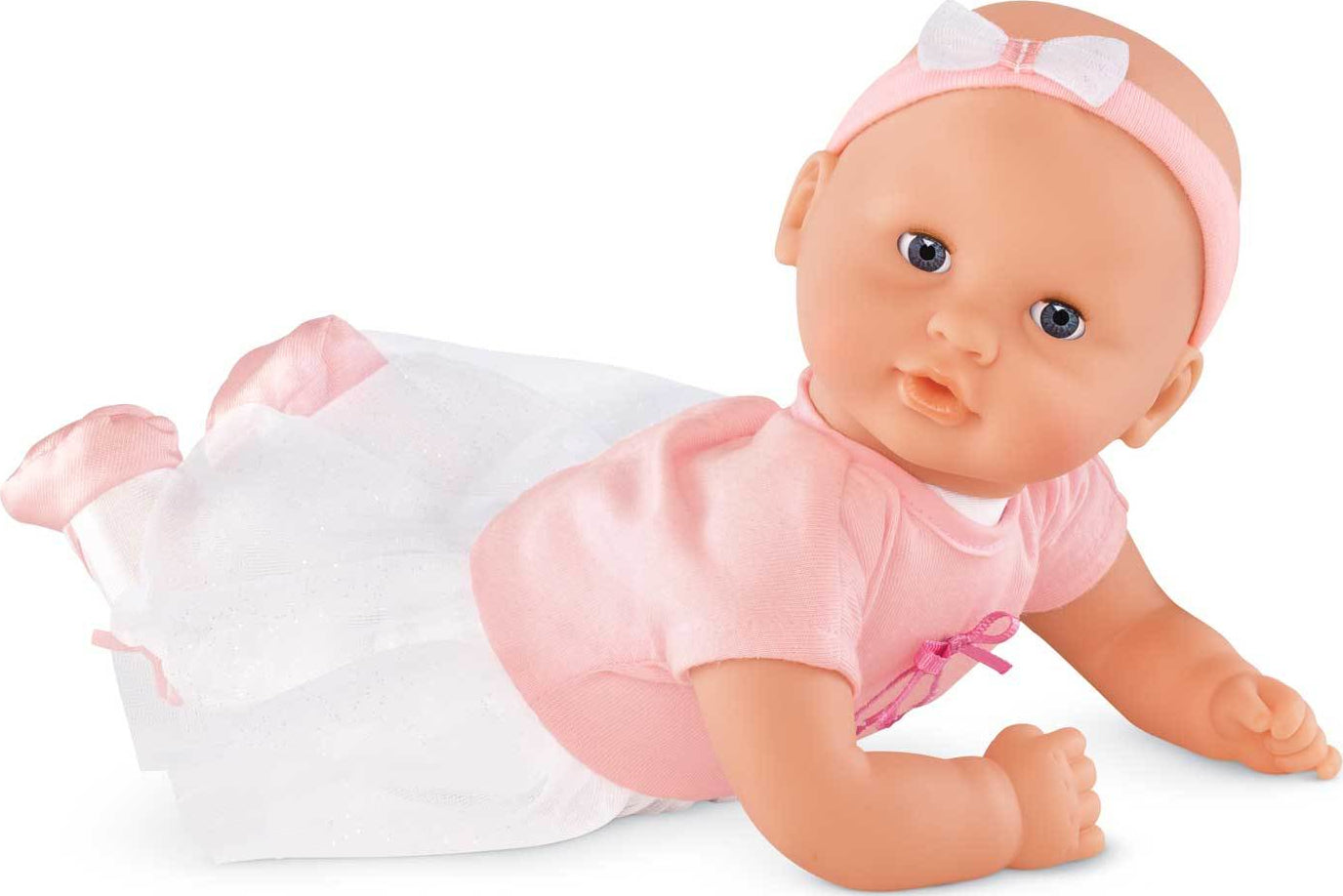 Corolle Mon Premier Calin Ballerina is the ideal first baby doll for ages 18 months and up. The adorable 12-inch baby doll is just the right size to cradle in a young child's arms. She has a cuddly soft beanbag body, so she can be posed like a real baby, and supple vinyl skin that is delicately scented with vanilla. Dressed in a lovely pink tutu and ballet slippers, Calin Ballerina is ready to pirouette into a little one's heart! Calin baby dolls can wear any fashion from the Mon Premier Corolle collection.