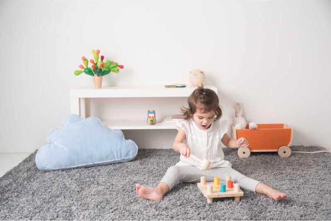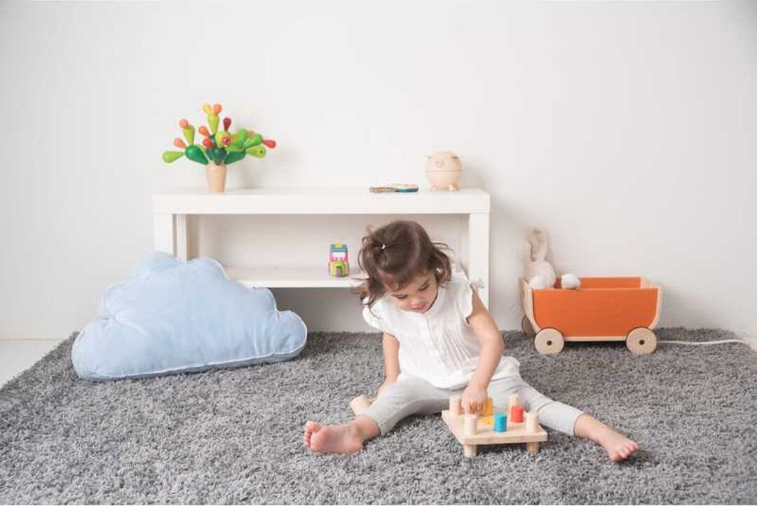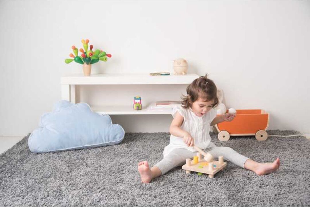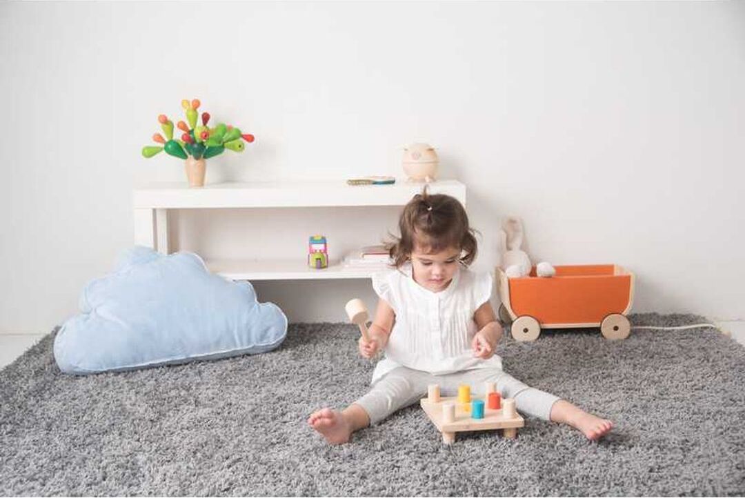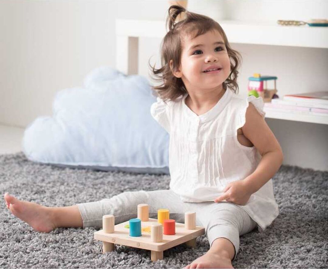 The Hammer Peg includes a four-hole wooden board with a wooden mallet for hammering practice. Children can turn it over and start the fun all over again.