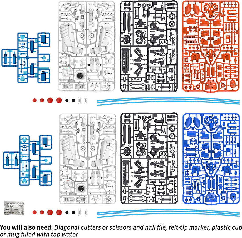 Ding! Ding! Jab, dodge, uppercut! These boxing robots use hydraulic power to move like real boxers. Packed with the excitement of a boxing match and the fun of constructing incredible mechanical models, this kit allows you to build two boxing robots and challenge a friend to a match. With complex shoulder gestures, two boxing punches (jab and uppercut), three waist postures, and interchangeable heads, these robots are designed to float like butterflies and sting like bees. Use the handheld hydraulic controls to fight like a champ. Knock your opponent robot’s head backward and score a point on the included scoreboard. Learn about how these amazing machines and hydraulic systems work. Leave the rocking and socking to the lightweights — this awesome STEM kit really packs a punch!