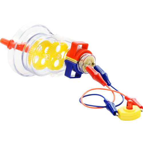 Electric motors and generators are in countless devices, appliances, and vehicles we use every day. They are an essential technology in our modern world. With this kit, you can conduct 25 experiments to learn how an electric motor converts electricity into motion, and how an electric generator does just the opposite, converting motion into electricity. The electric motor is made of transparent plastic to show how the inside components work. Set up the motor to run on battery power and learn how a motor works. Then reconfigure the device to work in reverse as a hand-crank electric generator. Experiment with magnets to learn about the force of magnetism, and how magnetic fields relate to electric current. Build simple circuits consisting of the motor or generator, wires, and a light bulb to learn about the flow of electricity. Learn about gears and drive-trains and how they work to effectively convert kinetic energy into electrical energy and back again. The full-color, 48-page manual guides your experiments with step-by-step instructions.