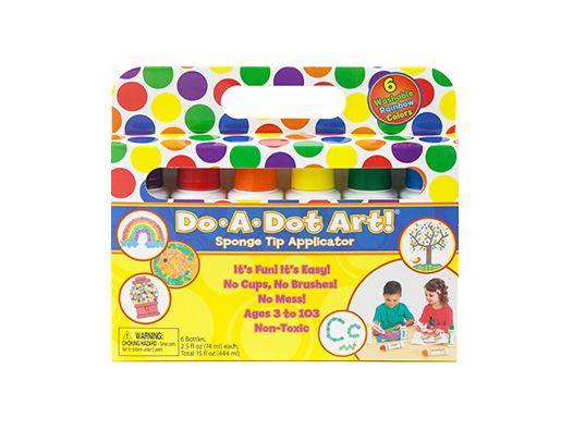 Do A Dot Art! This set comes with 6 washable dot markers in no spill, no splash bottles, which is a dream come true for parents and teachers. Do A Dot Art! is incredible for developing hand eye coordination and color recognition for young children, and is the first art medium every young child should use. Let your imagination run wild with this set of primary rainbow colors.
