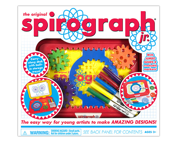 Now even the youngest artists can create amazing Spirograph designs! Jumbo-sized pieces are perfect for little hands and the handy drawing desk with washable markers makes clean up a breeze. A perfect introduction to drawing with Spirograph at their fingertips.