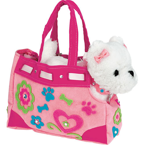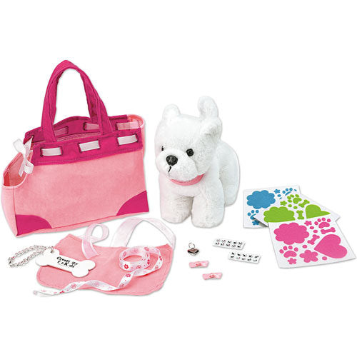 Develops fine motor skills, fosters imaginative play and promotes sensory development. Designed to comfort and cuddle, your completed purse measures 7" w x 5" h x 2-1/2" d. Dog measures 6-1/2" w x 6" h.